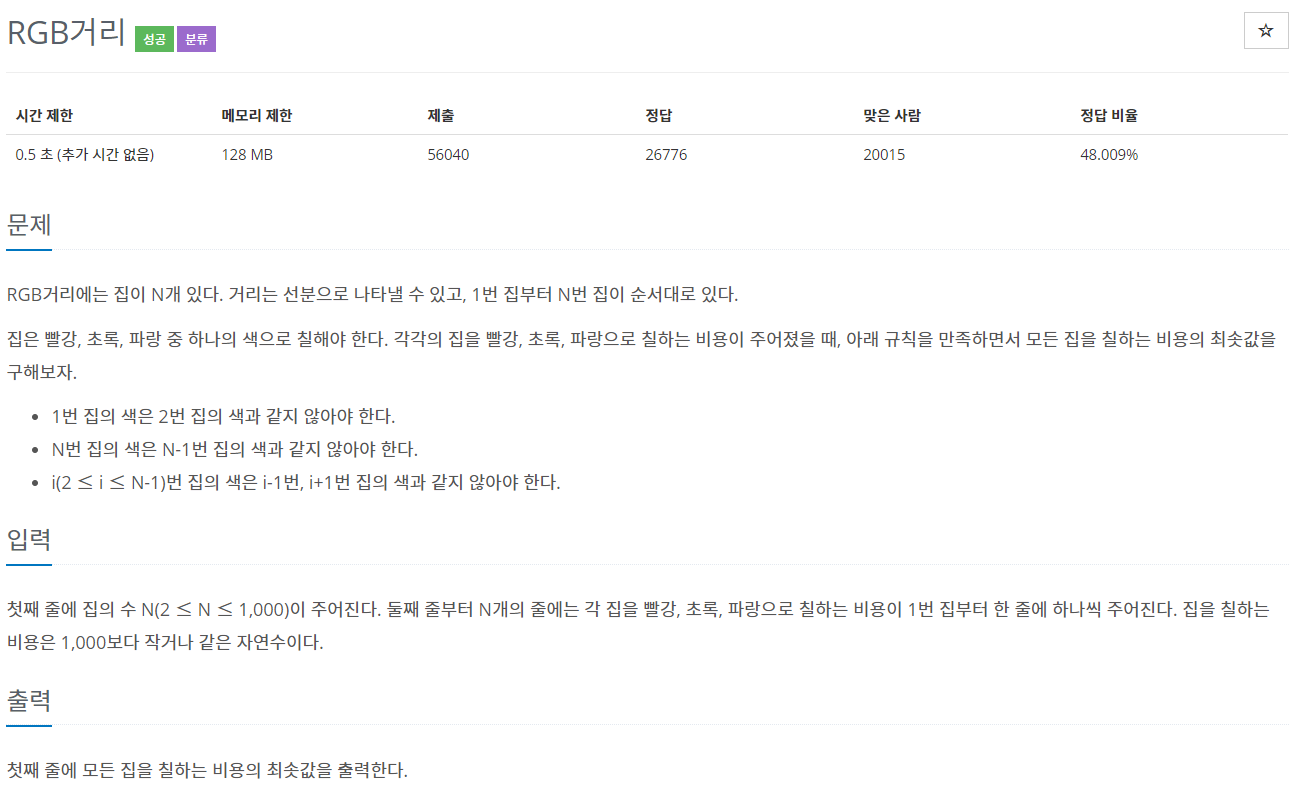 백준 1149번 문제 [RGB거리] 알고리즘 포스팅을 시작해보겠습니다.