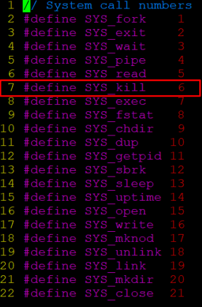 syscall-table index는 6번을 줬는데, 이는 즉 kill() system call 이 syscall-table의 6번에 위치하고 있다는 말이다.