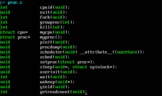 또한 이렇게 sysproc.c 파일에서 정의해놓은 외부 함수들을 이렇게 선언하여주어서, 접근할 수 있게 해놓은 것을 볼 수 있다.