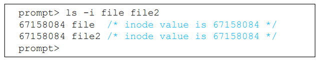 예를 들어 old.txt 파일이 100이라는 inode number를 가지고 있었다면, new.txt도 100이란 inode number를 갖게 되는 것.