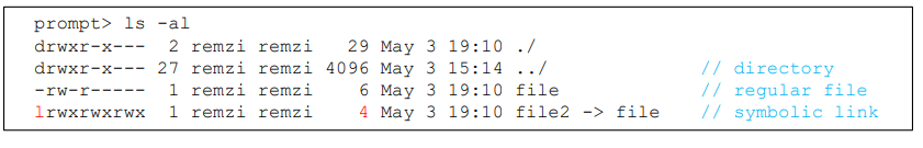 - 디렉토리도 일종의 파일(특별한)이며 <file name, inode number>의 쌍으로 이루어진 데이터를 가지고 있다. (디렉터리에 속한 파일들의 이름과 inode number)