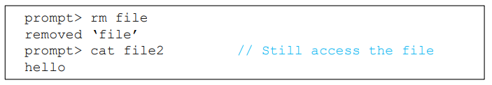 이 경우에는 old.txt파일을 지운다 하더라도 new.txt 파일은 여전히 남아있고 100이라는 inode number의 파일도 유지된다.