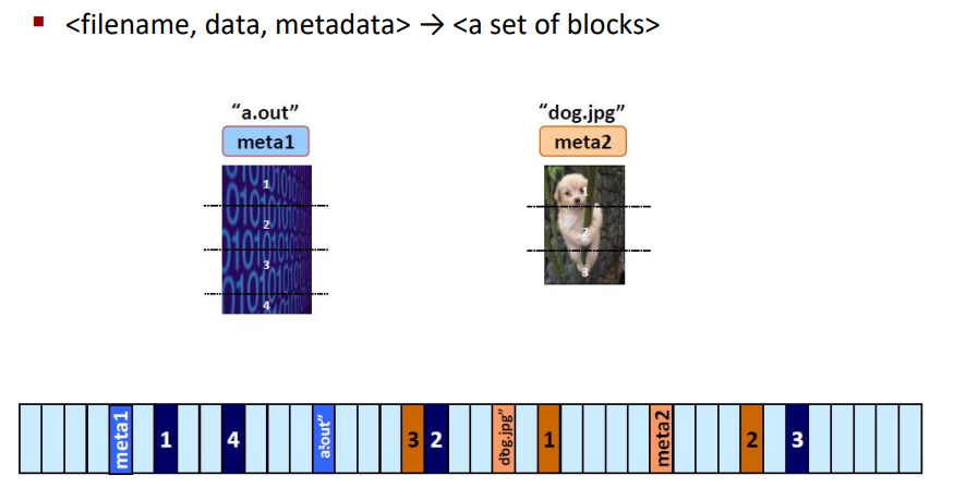 - File contents : 파일의 data라고 볼 수 있으며, 파일 시스템은 이 content가 어떤지 신경쓰지 않는다.(내용에는 관심이 없음)
