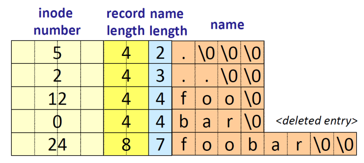 VSFS의 경우, directory는 <file name, inode number>의 선형 리스트로 이루어져있다.