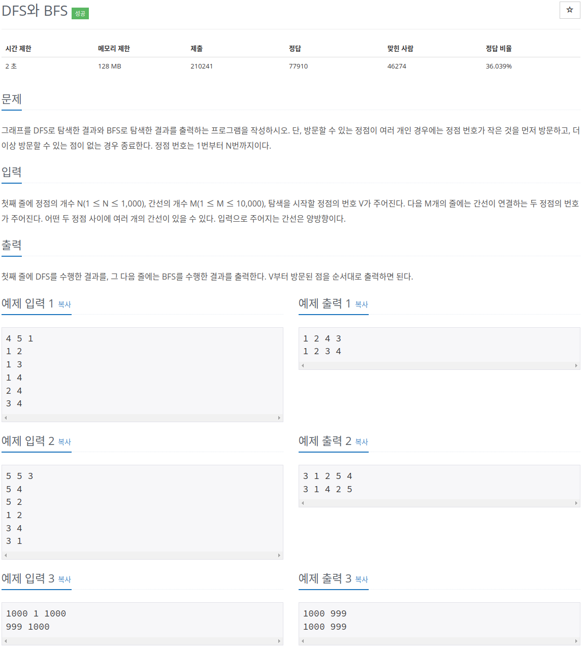 아주 전형적이고 기본적인 DFS, BFS문제라 가볍게 풀어보기 좋은 것 같다.