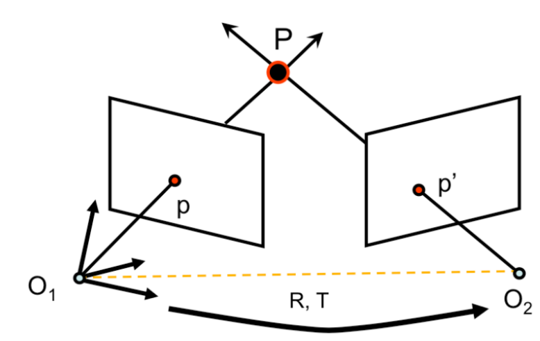 - 각 카메라의 중심을 $O_1,O_2$