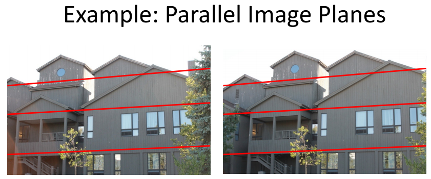 또 하나의 특징은, epipolar lines가 각 image plane의 $u$축과 평행하다는 것이다.