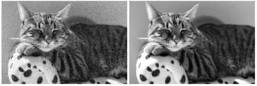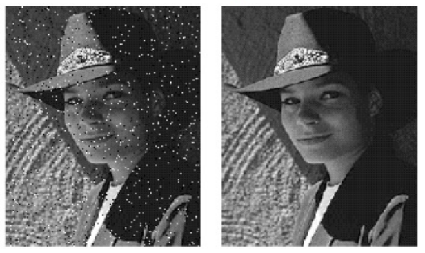 따라서, median(중간값)을 택하여 해당 pixel에 replace해준다.