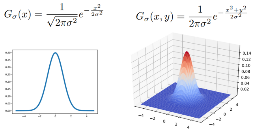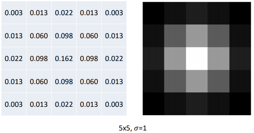 그리고 이처럼 kernel을 구성할 때, gaussian distribution의 앞 계수(factor)는 신경쓰지 않고 kernel의 모든 원소의 합이 1이 되도록 normalize만 해주면 된다.