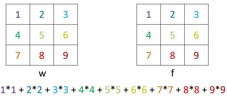 $$ Sf=\sum_{i=-1}^1\sum_{j=-1}^1w(i,j)f(m+i,n+j) $$