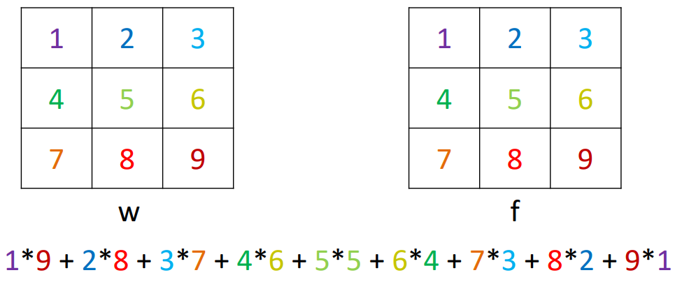 $$ Sf=\sum_{i=-k}^k\sum_{j=-k}^kw(i,j)f(m-i,n-j) $$