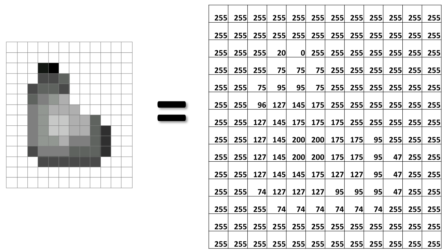 - A grid (matrix) of intensity values (보통 0이 black, 255 : white를 의미)