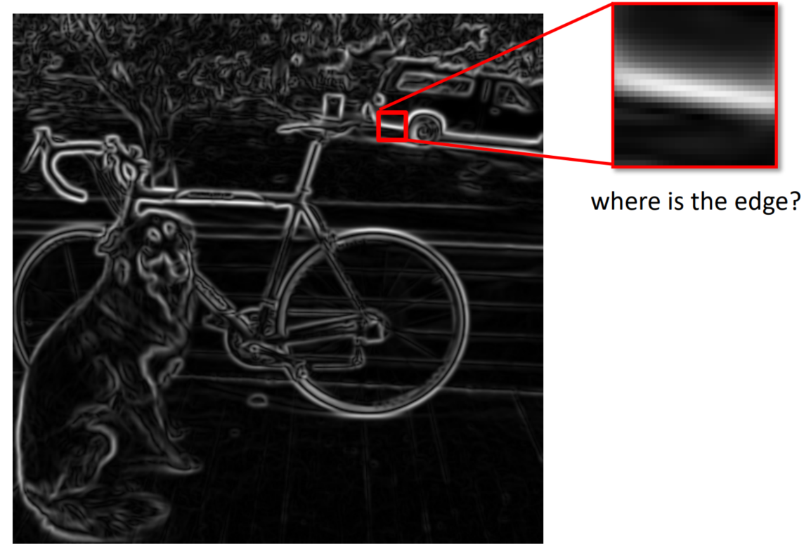 Gaussian filter을 이용해서 noise를 줄여주는 것은 매우 바람직하지만, 그 결과로 edge가 좀 두껍게 detecting되는 문제가 생긴다.