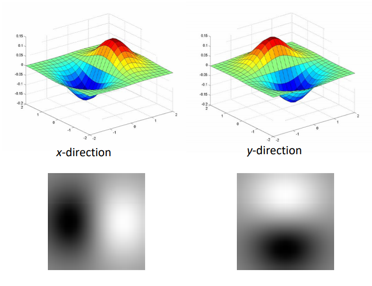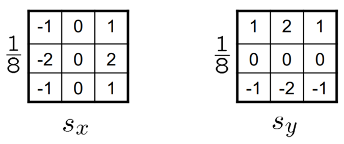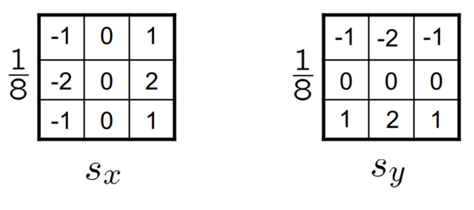위의 그림에서 $x,y$ direction에서의 미분 결과를 살펴보았는데, 이를 kernel로 나타내면, 다음과 같다.