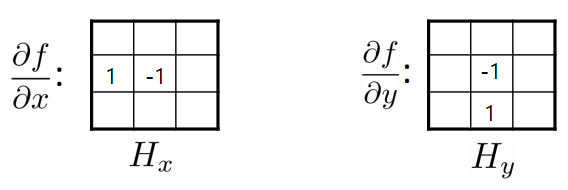 convolution 연산을 적용하는 것이기 때문에, $F[x+1,y]-F[x,y]$ 이 된다.